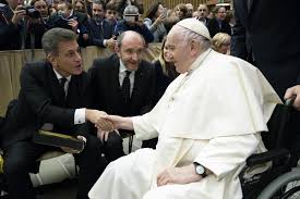 На снимката: Тодор Попов най-вляво се ръкува с папа Франциск